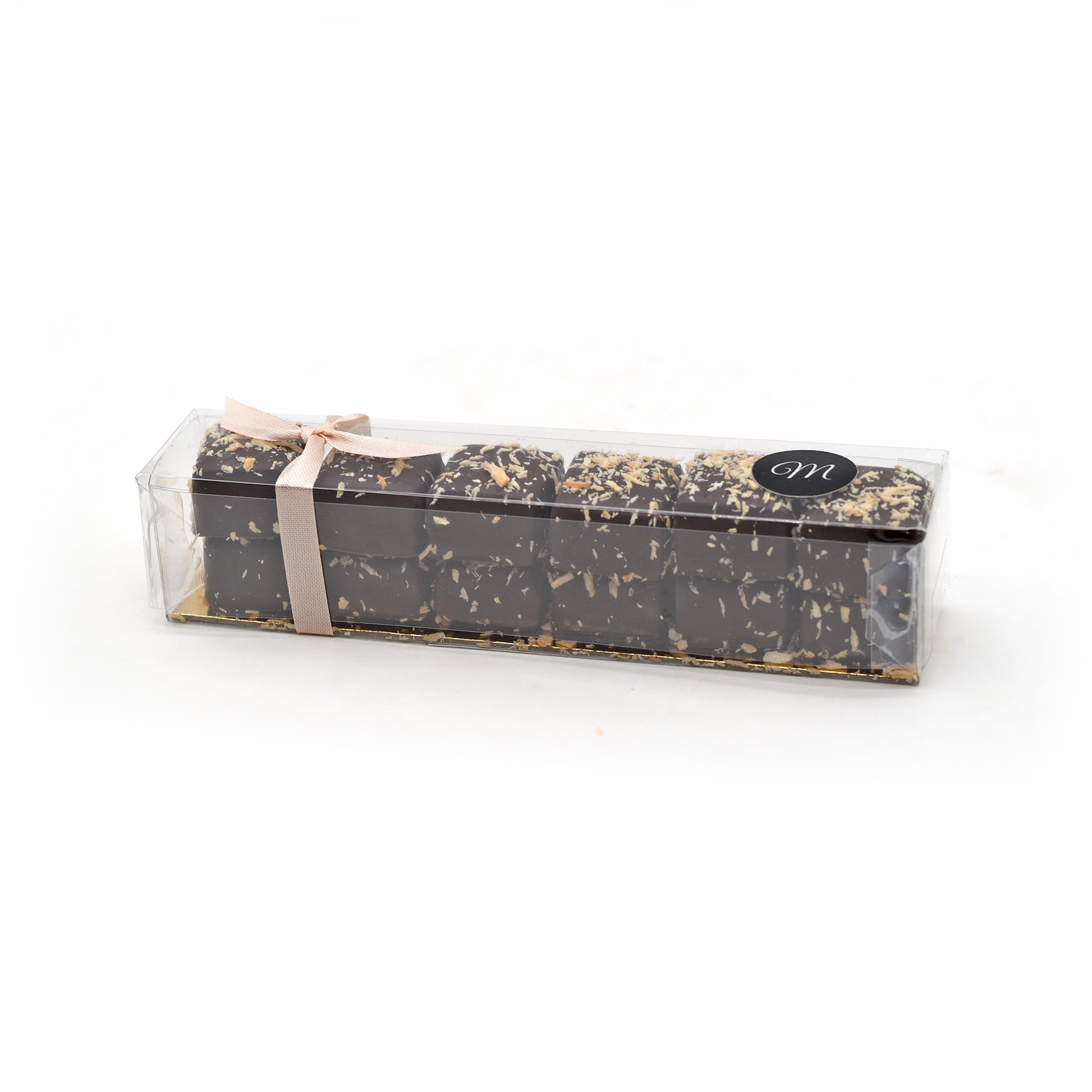12 carrés pralinés maison à la noix de coco enrobés de chocolat noir