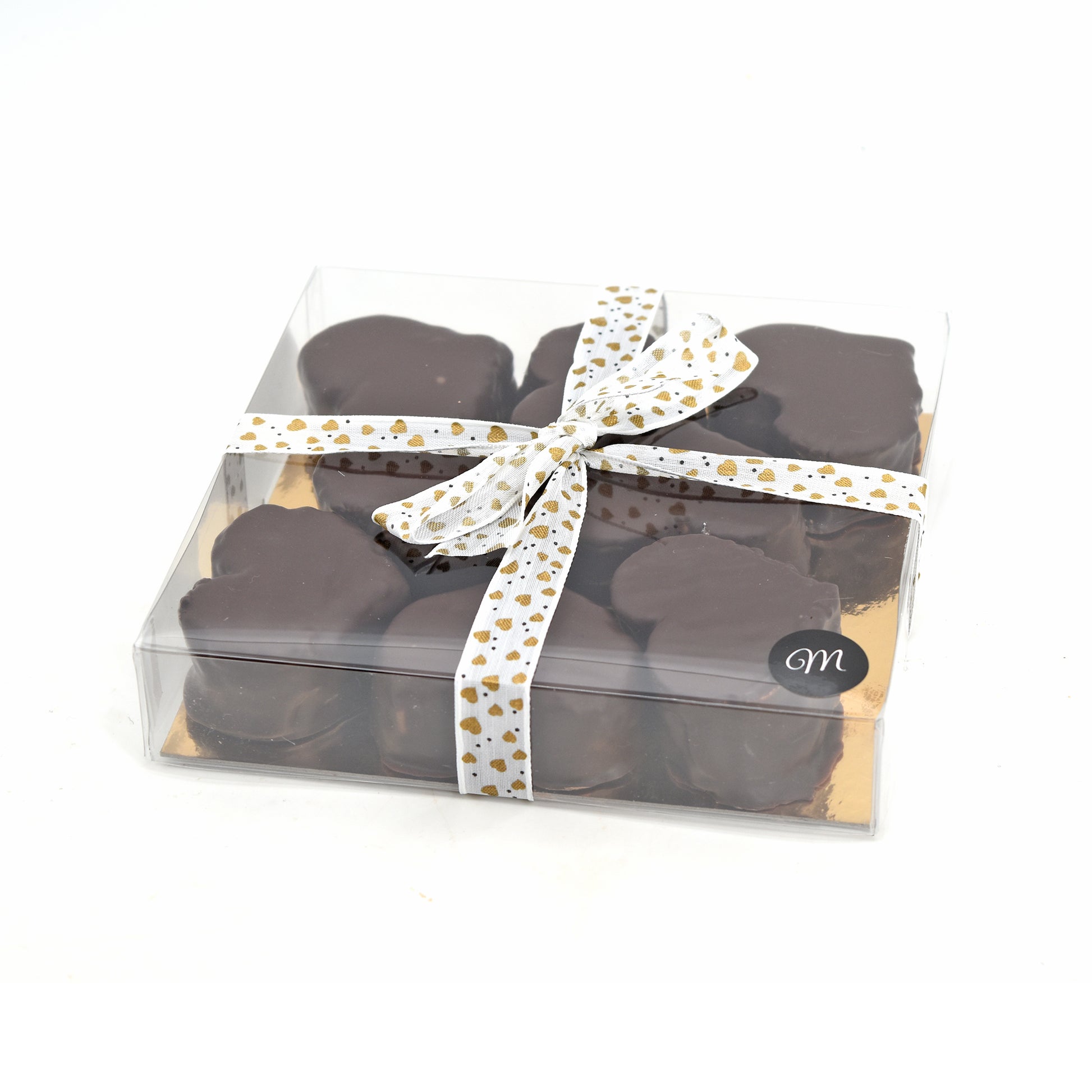 8 grands cœurs chocolat noir garnis de guimauve fondante cerise et myrtille.