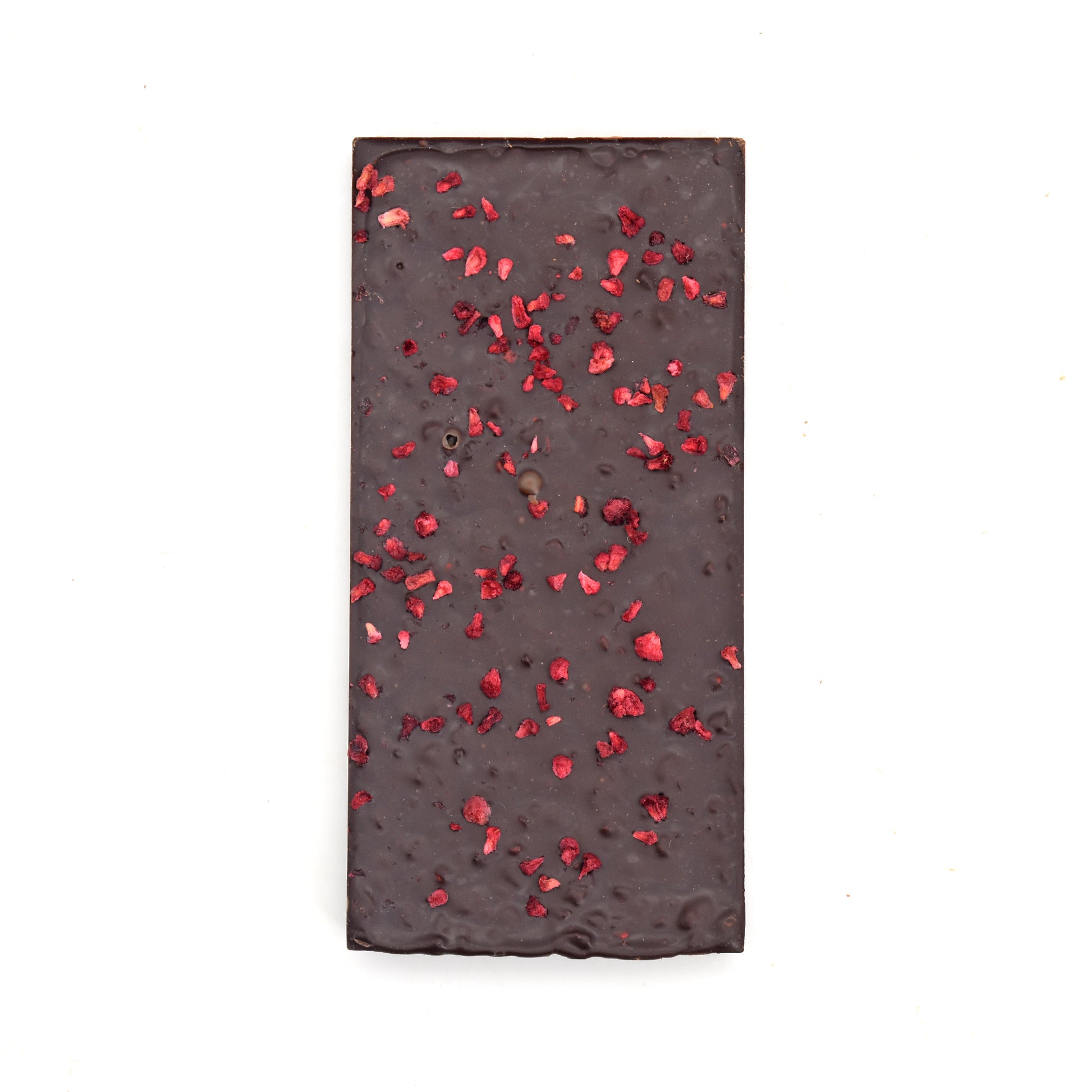 L'intensité du noir 80% rencontre la fraîcheur acidulée de la framboise.